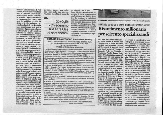15 Marzo 2015. Il Mattino di Padova. Specializzandi, il ministero obbligato a un maxi risarcimento di 23 milioni